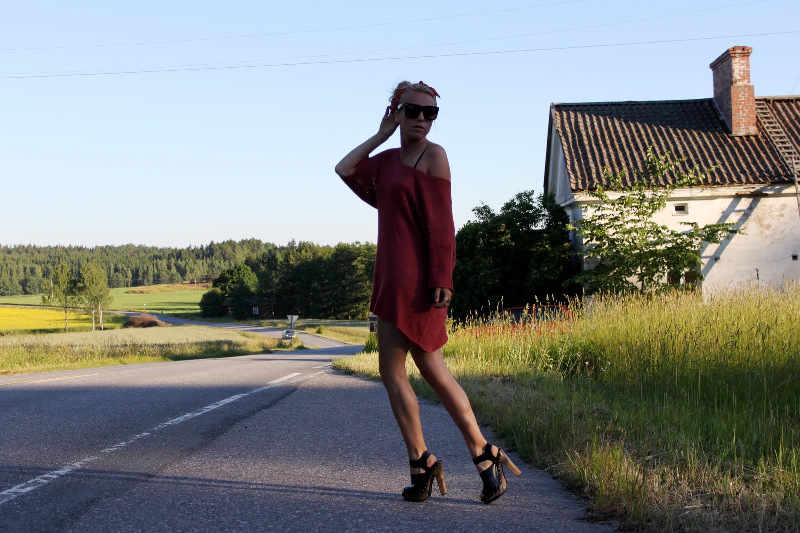 Ahh the joy of a simple knit dress.. and of course no other shoes than clogs would have fitted in better. How pretty is the old barn in the picture? I wish I lived there but it is just something I drive by every now and then..
